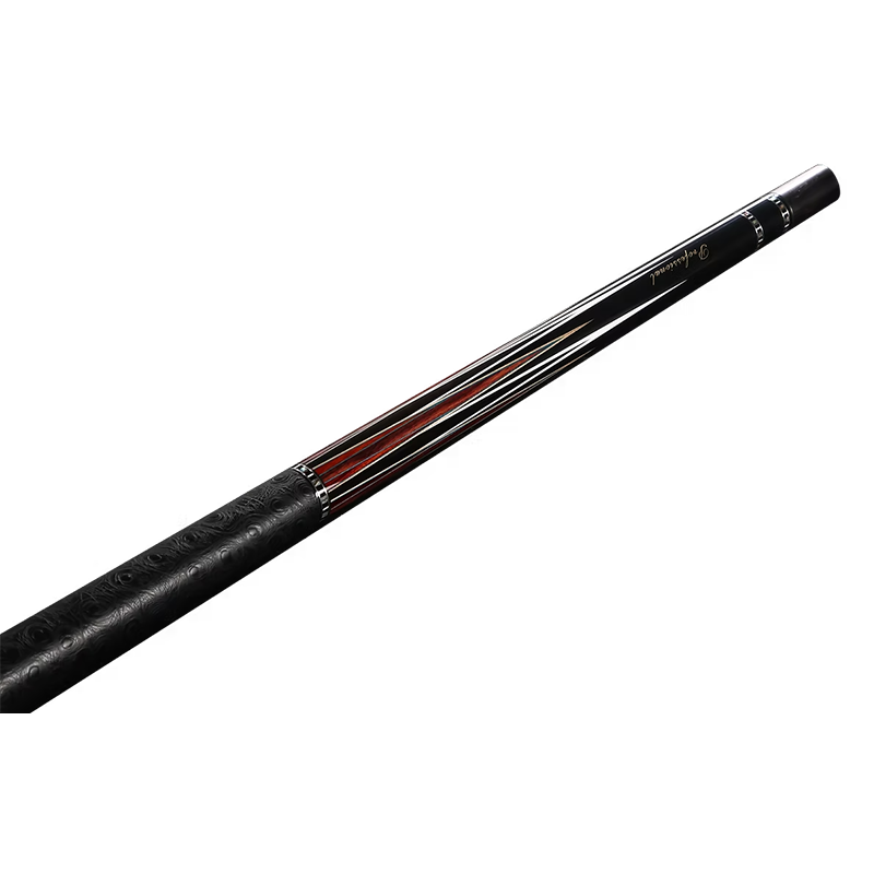 Kraftvoller Queue aus Ebenholz mit 10-Splice-Layout aus Elforyn, Cocobolo und Rosenholz – präzise, charakterstark und kompromisslos im Design.
