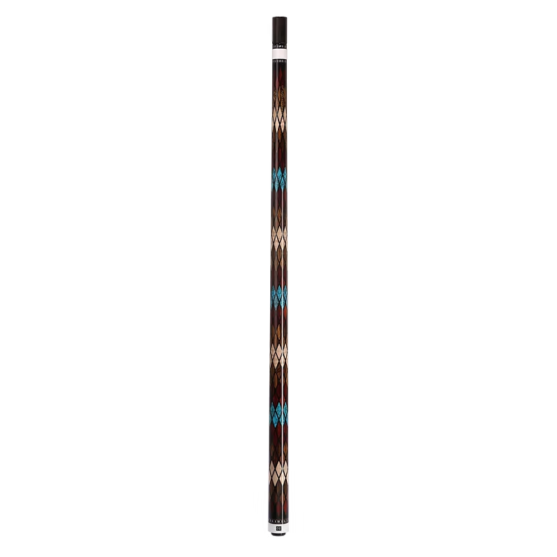 Luxus-Queue aus Ebenholz mit über 400 Rauten-Einlagen aus Riegelahorn, Türkis, Elforyn, Rosenholz & Regas Wood – kraftvoll, präzise, einzigartig.
