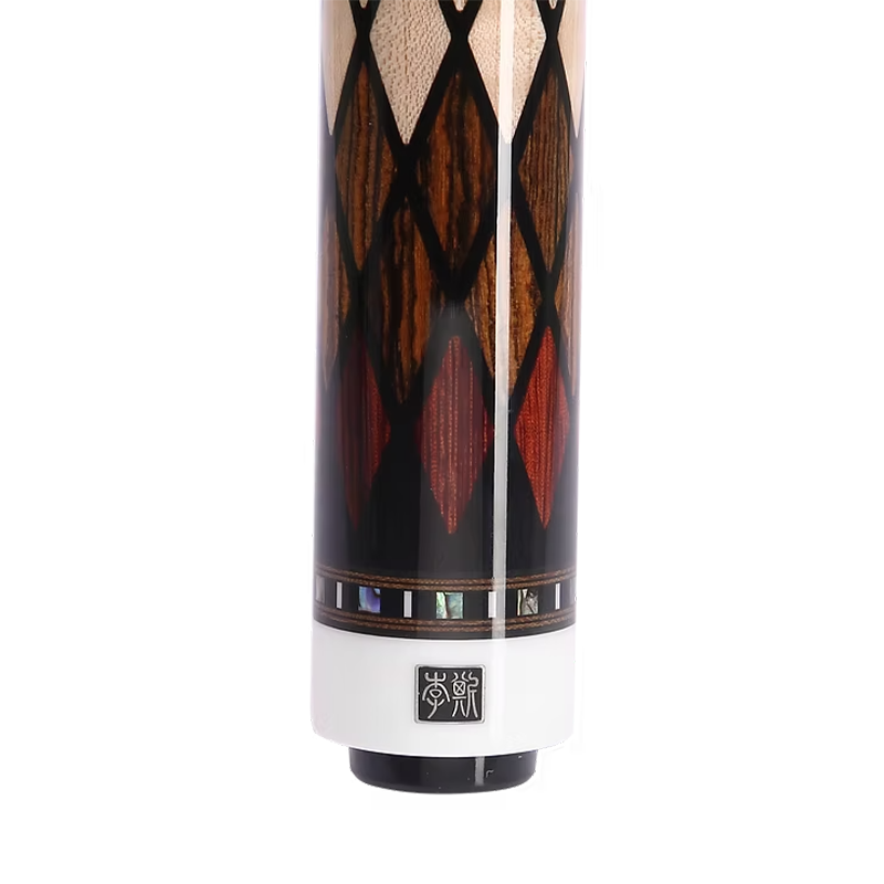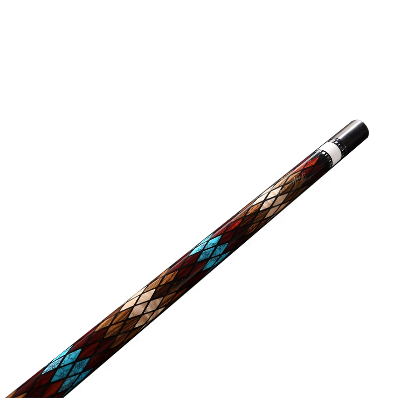 Der Cuelees War Armor 1 LS-A04 ist ein Premium-Queue der A-Series, entwickelt für Spieler, die kompromisslose Präzision und außergewöhnliches Design verlangen. Forearm und Butt-Sleeve bestehen aus edlem Ebenholz, aufwendig akzentuiert mit über 400 einzeln gefertigten Einlagen in Rautenform – aus Riegelahorn, blauem Türkis, Regas Wood, German Elforyn und Rosenholz. Schimmernde Abalone-Ringe setzen elegante, hochwertige Akzente und unterstreichen die Handwerkskunst jedes Details.